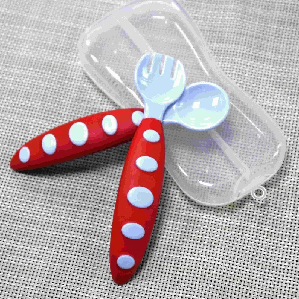 2pcs/ Set Children Spoon Portable Kids Stainless Steel Fork Safety Baby Feeding Spoon Eating Training Spork Infant Tableware