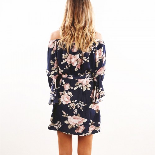 Floral Women Dress Sexy Off Shoulder Print Chiffon Dress Boho Style Short Party Dresses Vestidos de fiesta freeship 14 days
